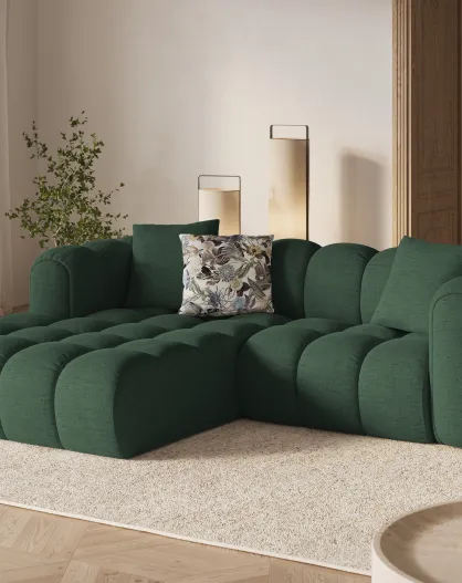 Canapé d'angle gauche modulaire Elise 3 places vert de mer - 238x190x70 cm