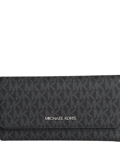 Portefeuille long Jet Set Travel en cuir noir - 19,7x9,5 cm