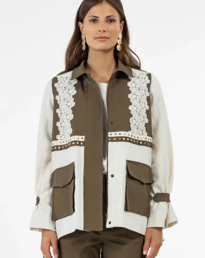 Veste en coton Shane kaki/ecru brut