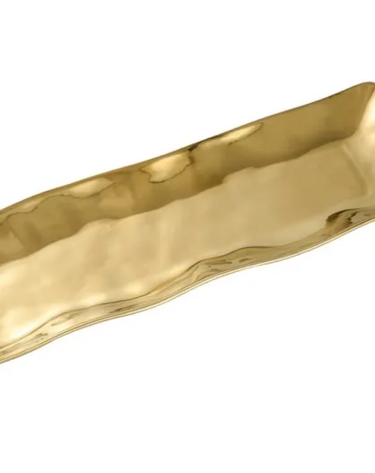 Plat de service rectangulaire Moonlight blanc et or - 48,3x15,9x2,5cm
