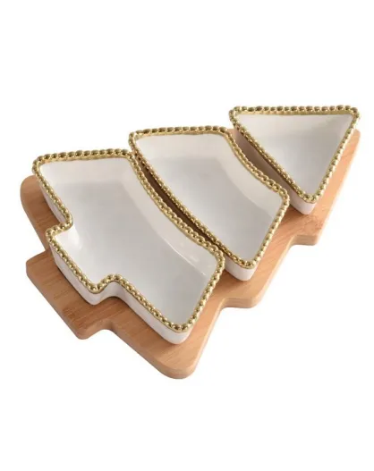 Lot de 4 plats de service en forme de sapin de Noël à compartiments For Holidays multicolore - 27,9x20,3x4,4cm