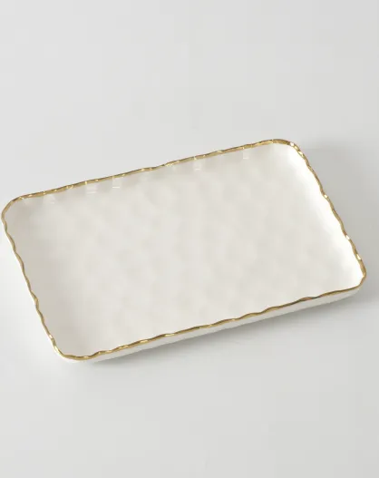 Petit plateau rectangulaire Portofino blanc et or