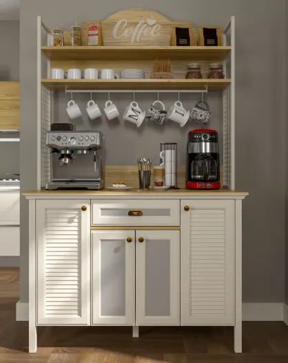 Meuble bar à café FRN 21027 1 crème/chêne/blanc - 125,4x210,3x52,1cm