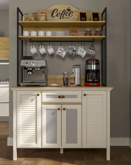 Meuble bar à café FRN 21027 crème/chêne/noir - 125,4x210,3x52,1cm
