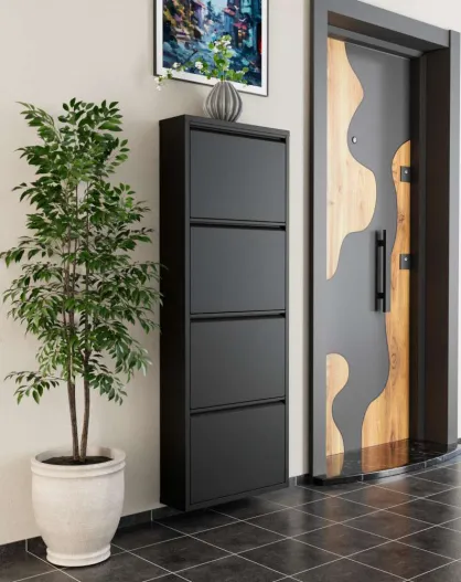 Meuble à chaussures 4 Piece Metal noir - 50x136x15 cm