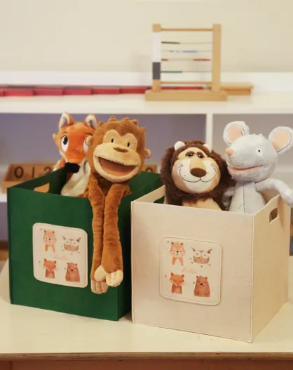 Panier en feutre HMY 6258 vert/crème - 30x30x30 cm