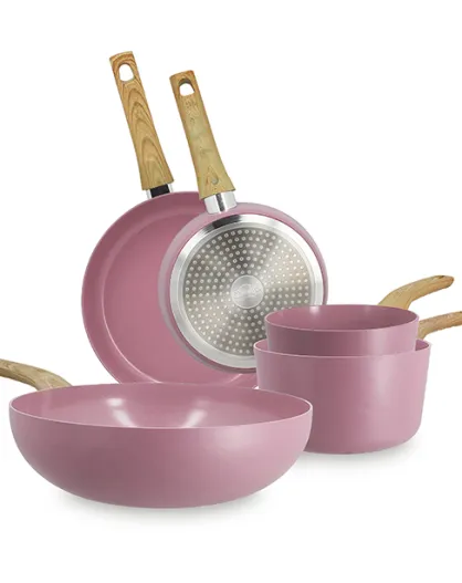 Set 5 pièces lilas casserole poêle wok en aluminium induction - 475 x 280 x 110 cm