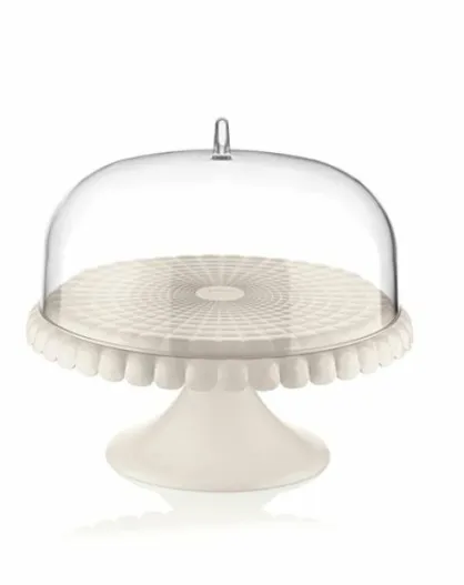 Petit présentoir à gâteau avec dôme Tiffany blanc laiteux - 27x30 cm