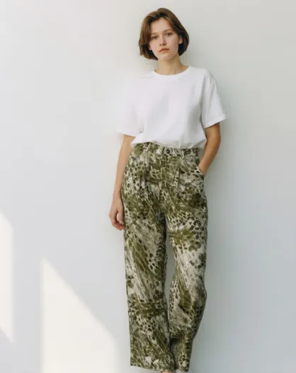 Pantalon en lin mélangé Aria kaki