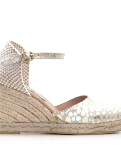 Sandales compensées Nuria à pois beiges - Talon : 6,5 cm