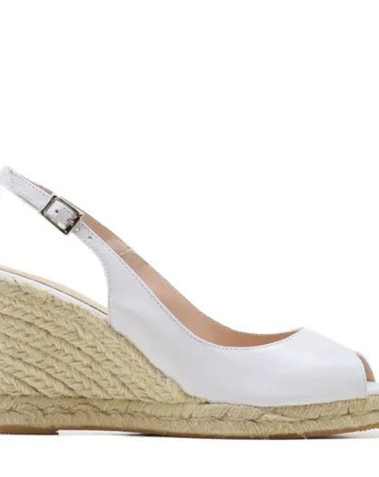 Sandales compensées F-3509 blanches - Talon : 8,5 cm