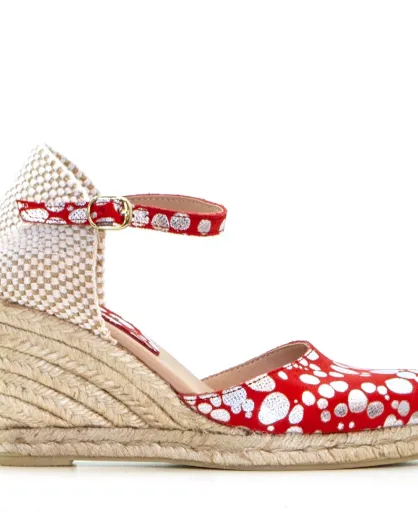 Sandales compensées Nuria à pois rouges - Talon : 6,5 cm
