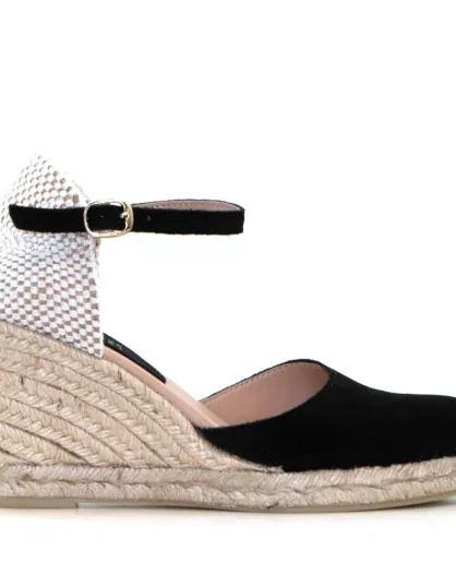 Sandales compensées Nuria noires - Talon : 6,5 cm