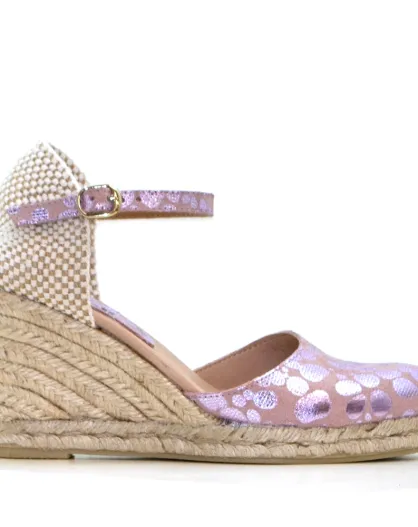 Sandales compensées Nuria à pois fuchsia - Talon : 6,5 cm