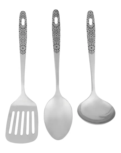 Ustensile en inox lot de 3 pièces Ramadan gris - 32/27.5/ 32.5 cm