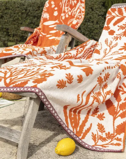 Drap de plage en jacquard velours Calyspo orange moyen - 100x180 cm