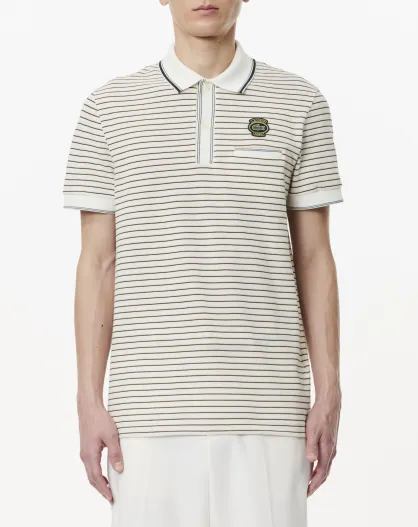 Polo regular fit en mini Piqué rayé farine/Multicolore