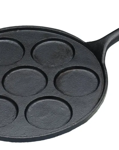 Poêle à blinis en fonte à 7 trous noir - 35.5x24x5 cm