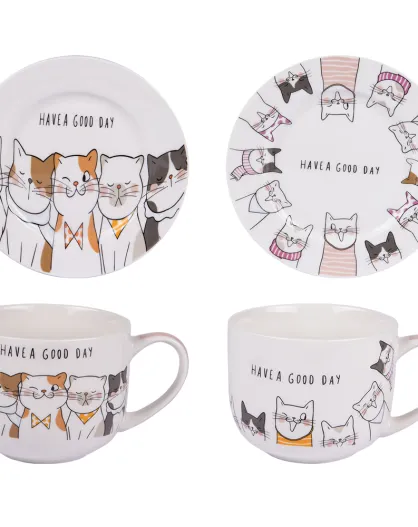 Coffret déjeuner avec assiette Le Chat multicolore - 14x10x8,5cm