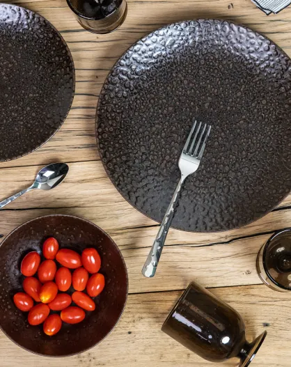 4 Assiettes plates Basalte marron - 33x33x3cm