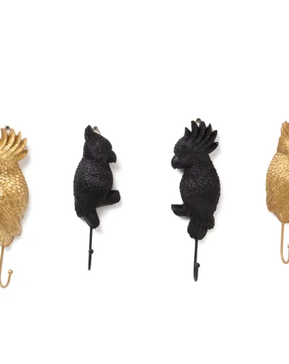 Set patère perroquet 4 pièces noir - 16x3 cm