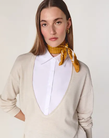 Pull manches longues en laine Aiko blanc écru