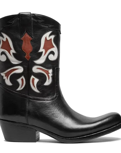 Bottes western en cuir noir/blanc/rouge
