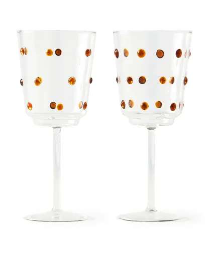 2 Verres à vin à boutons ambrés jaunes - D8.5xH20 cm
