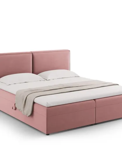 Ensemble boxspring en velours Arendal rose - 210x206x100cm