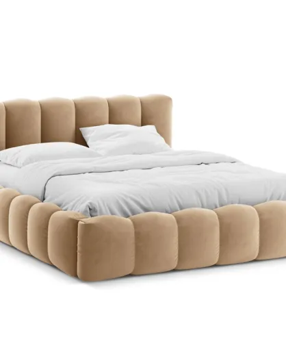 Lit Coffre Avec Tête de Lit en velours Double Senna le sable - 226x186x95cm
