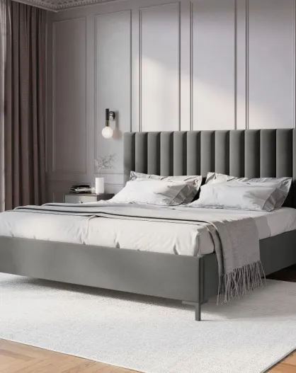 Lit Coffre Avec Tête de Lit en velours Apollo gris clair - 220x150x130cm