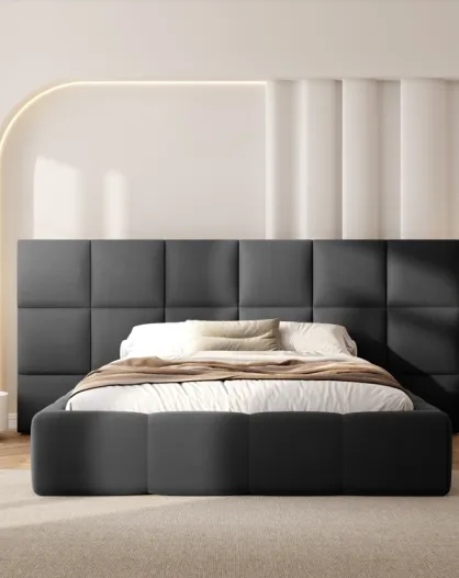 Lit Coffre Avec Tête de Lit en velours Double Isa gris - 230x250x125cm