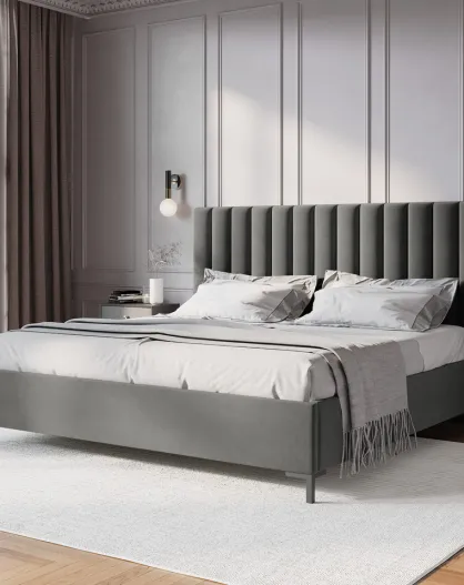 Lit Coffre Avec Tête de Lit en velours Apollo gris clair - 220x170x130cm