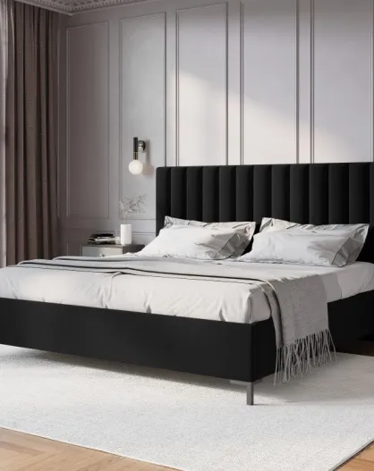 Lit Coffre Avec Tête de Lit en velours Apollo noir - 220x150x130cm