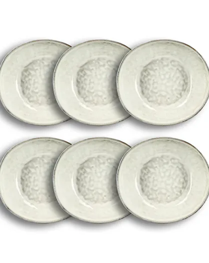 Lot 6 assiettes creuses boral en grès beige - D.21 cm