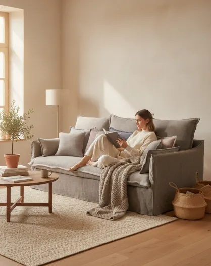 Canapé lin délavé gris foncé - 210x100x80 cm