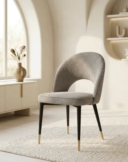 Chaise Adèle gris chiné bouclé - 47x52x87 cm
