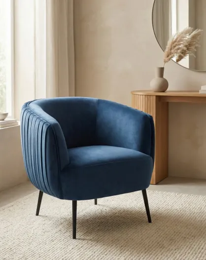 Fauteuil effet plissé en velours bleu ardoise - 77x80x74 cm