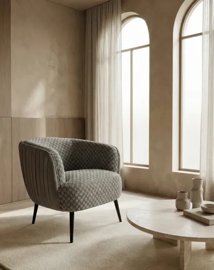Fauteuil effet plissé en velours gris pierre tissé - 77x80x74 cm