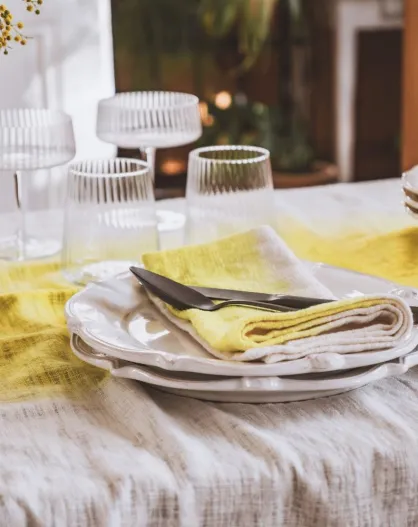 Lot de 4 serviettes de table deep dye jaune/blanc - 45x45 cm