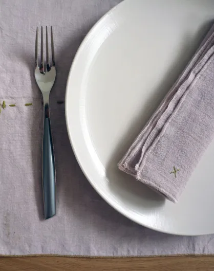 Lot de 2 serviettes de table en lin à surpiqûres contrastées violettes - 45x45 cm