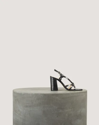 Sandales Noeud en cuir crispé Noires - Talon 8 cm