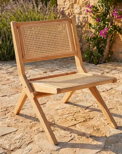Chaise pliante masdam en bois massif naturel et cannage en rotin - 52x79x73 cm