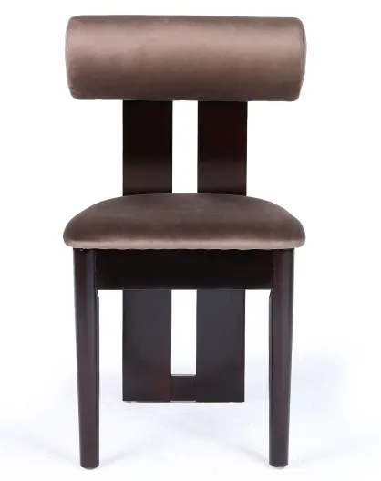 Chaise de salle à manger tuboli bois foncé et velours marron - 45x55x79 cm