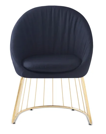 Chaise design avec dossier arrondi effet drapé pralion pied doré et tissu noir - 61,5x62x84 cm
