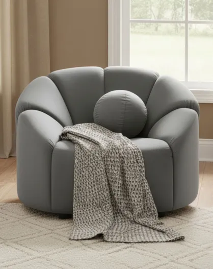 Fauteuil design arrondi en velours Sidonie gris - 103x87x74 cm