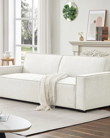 Canapé convertible clic-clac 3 places en tissu Pikado effet lin crème - 230x94x75 cm
