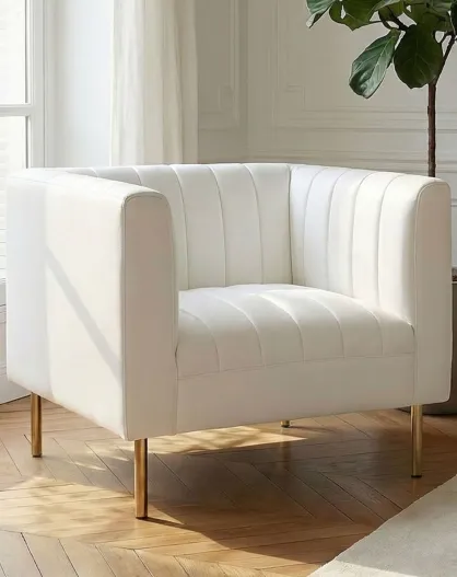 Fauteuil moderne à coutures verticales Sacramento simili blanc - 84x76x72 cm