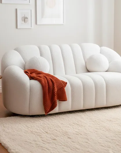 Canapé 2 places design en tissu bouclette Sidonie blanc - 162x87x74 cm