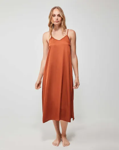 Chemise de nuit longue satin chaudiaire orange